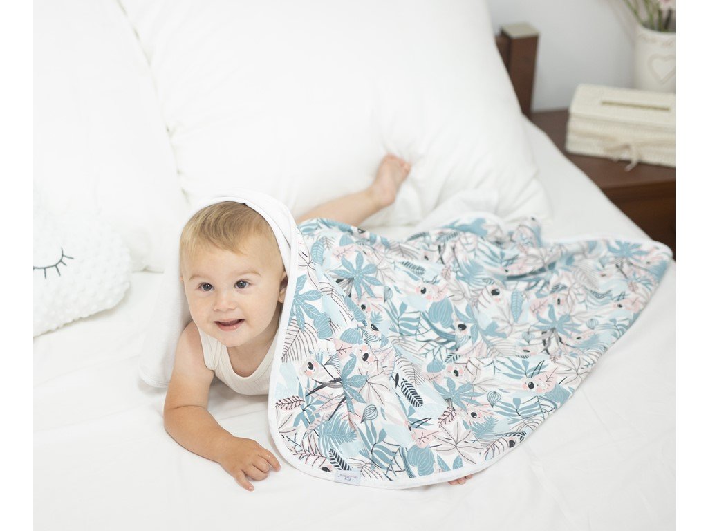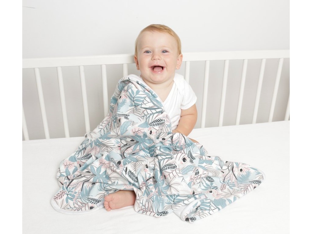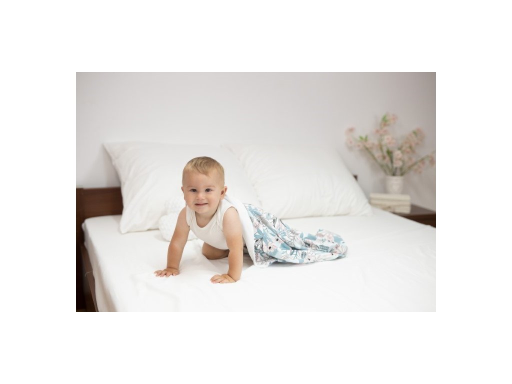Oboustranná deka je vyrobena ze 100% bavlny, což zajišťuje její jemnost a šetrnost k citlivé dětské pokožce. Bavlna je přirozeně prodyšná a hypoalergenní, takže poskytuje miminku příjemné teplo, aniž by způsobovala přehřívání.