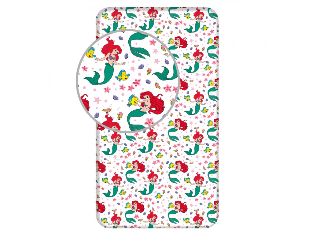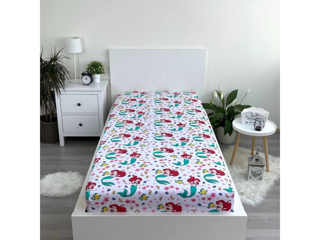 Dětské bavlněné prostěradlo s motivem mořské víly Ariel poskytne dětem pohodlný spánek plný krásných dětských snů.