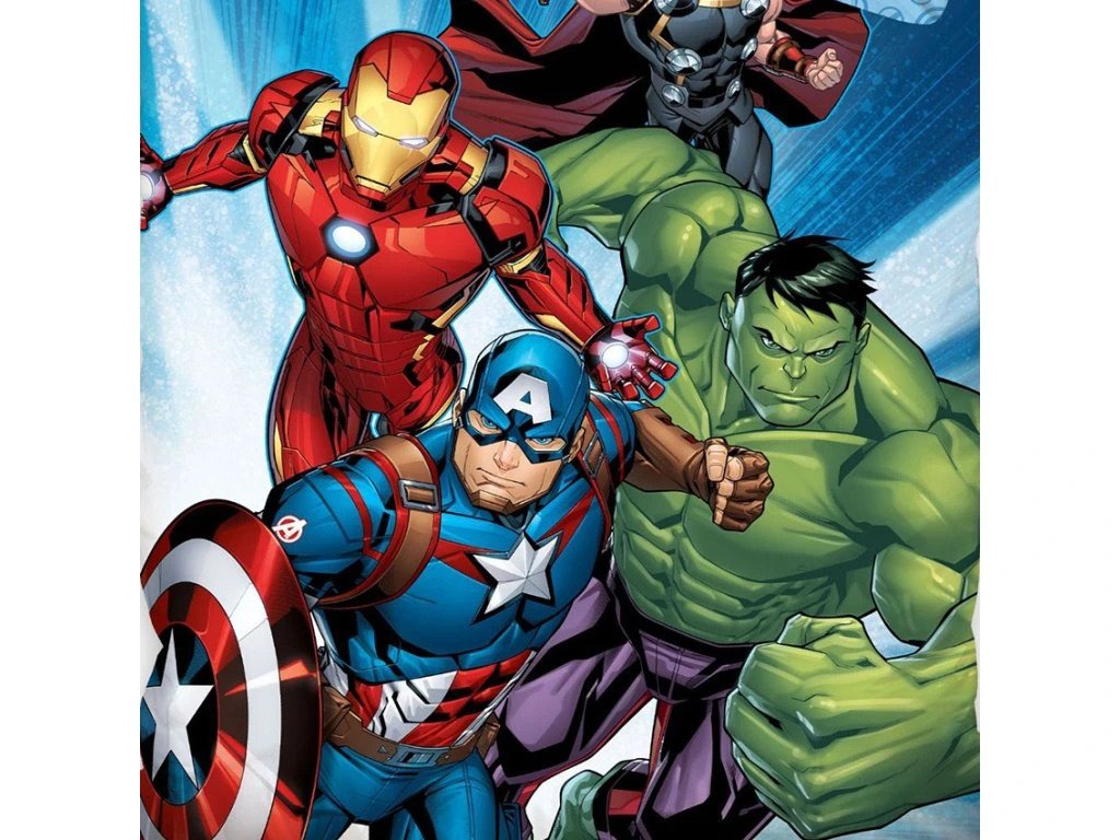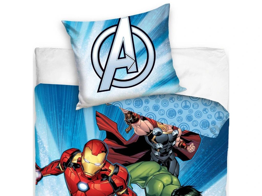 Dětské povlečení s motivem hrdinů Avengers nadchne všechny milovníky Marvelových komiksů a filmů. Avengers hrdinové Hulk, Iron-man, Thor a Kapitán Amerika jsou připravení k boji se zlem.