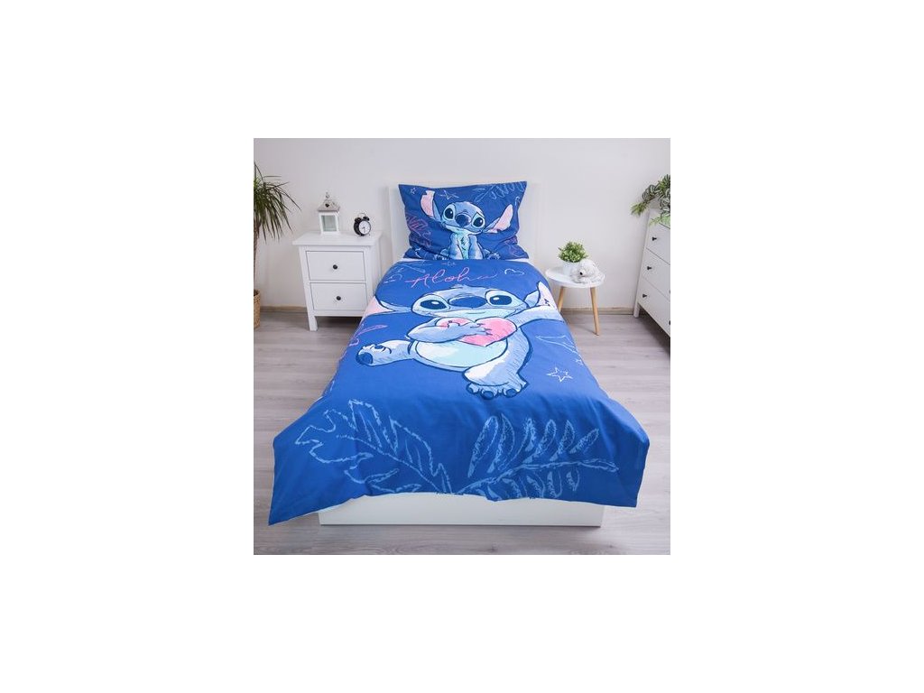 Povlečení má oboustranný potisk – každá strana má jiný motiv, díky tomu můžete snadno měnit vzhled postele podle nálady. Na přední straně povlečení je Stitch ržící srdíčko. Zadní strana je bílá s drobnými motivy Stitche.