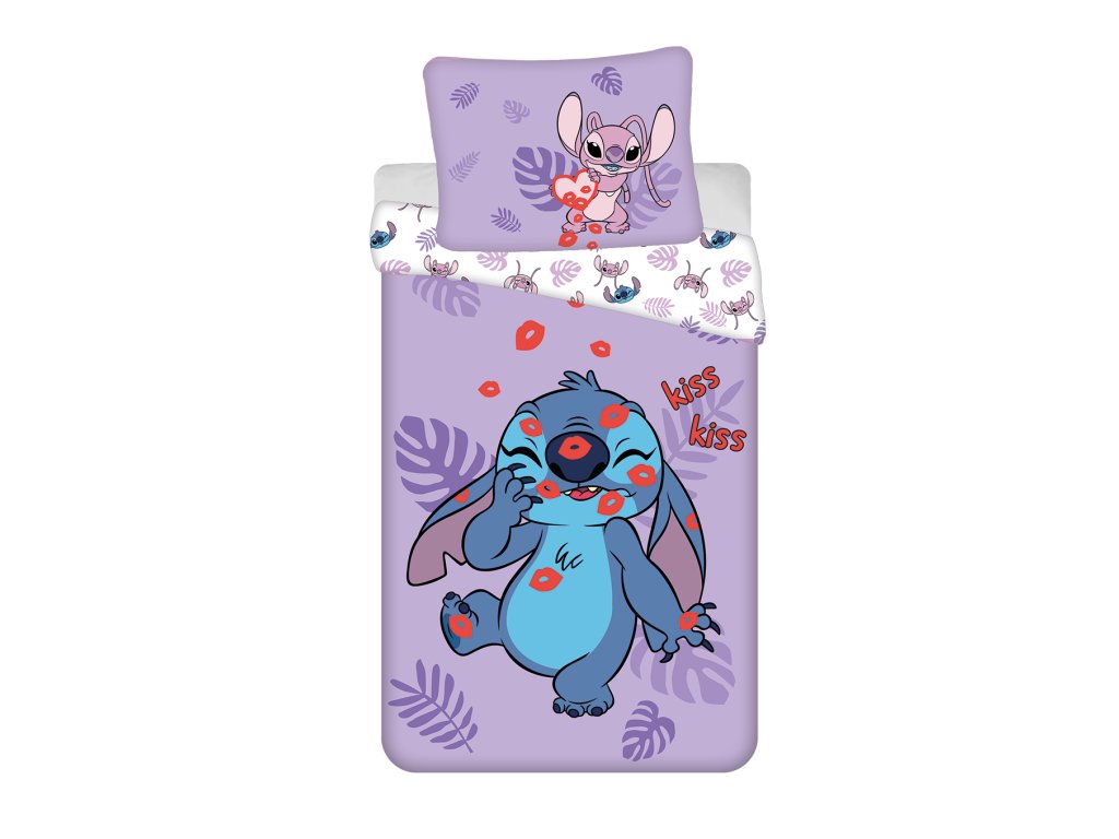 Povlečení má oboustranný potisk – každá strana má jiný motiv, díky tomu můžete snadno měnit vzhled postele podle nálady. Na přední straně povlečení je Stitch, který je zasypáván pusinkami od Angel. Zadní strana má motiv palmových listů, mezi kterými vykukují Lilo a Angel.
