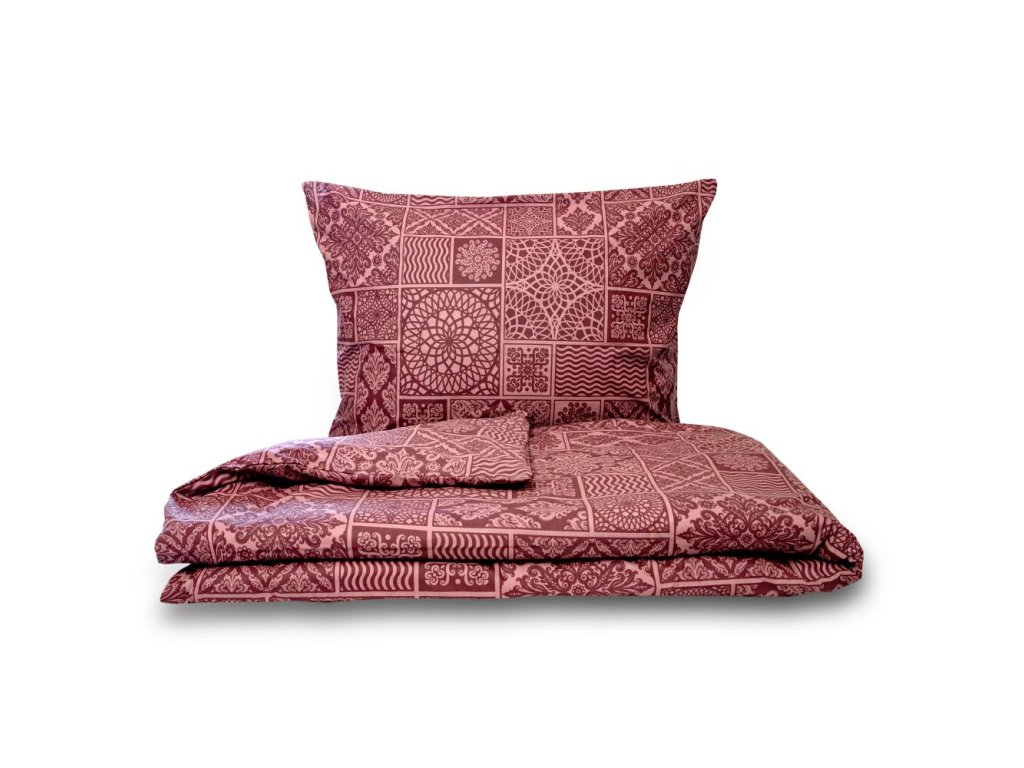 Dodejte své ložnici styl a eleganci s kvalitní bavlněným povlečením typu renforcé se světejším bordó geometrickým a orientálním vzorem v mozaikovém stylu.