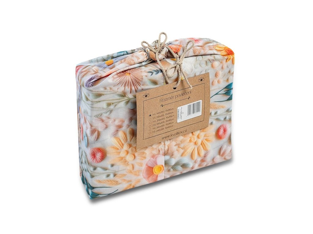 Povlečení je zabaleno do stylového látkového sáčku vyrobeného ze zbytků bavlny z výroby. Sáček lze využít opakovaně – například na drobnosti, nákup nebo jako originální dárkové balení.