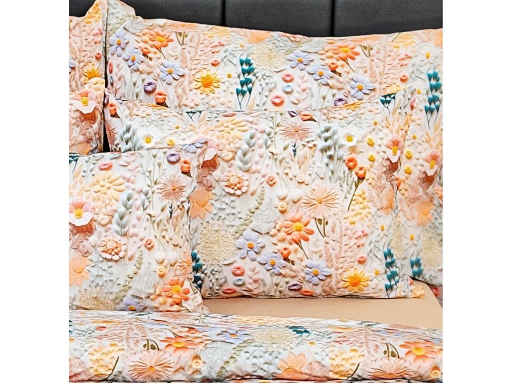Bavlněné povlečení 5D 140x200 + 70x90 cm - Polní kvítí