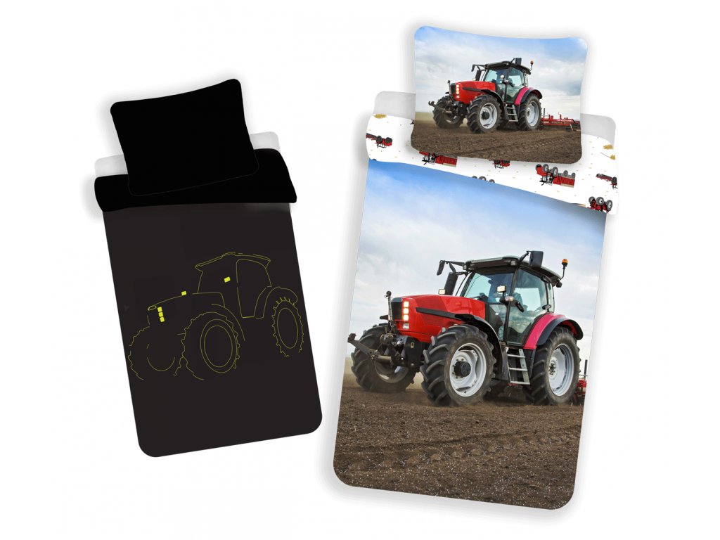 Bavlněné povlečení se svítícím efektem 140x200 + 70x90 cm - Traktor "Red"