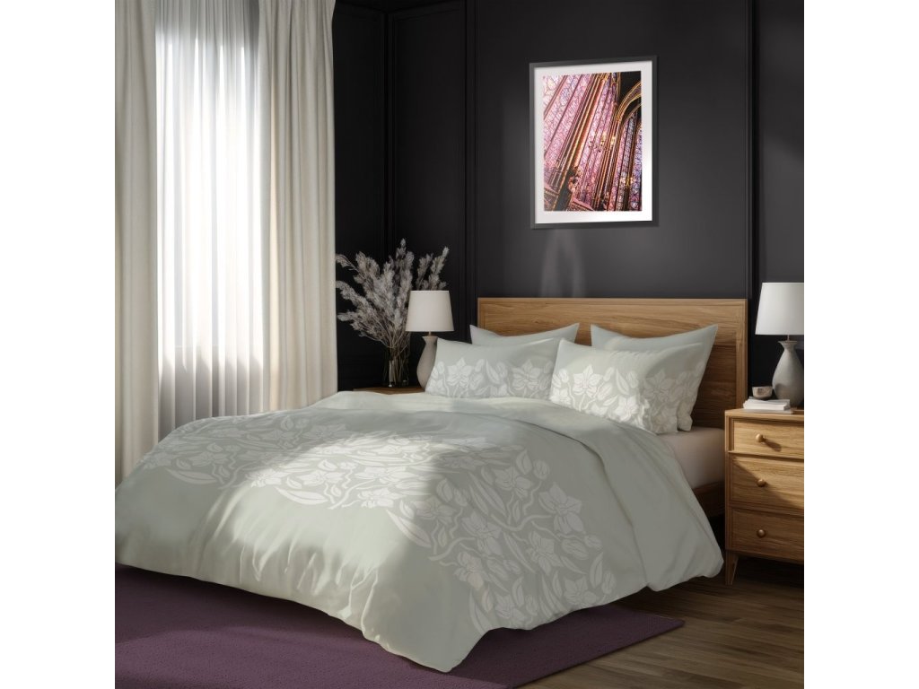 Dopřejte si luxusní spánek s bavlněným saténovým povlečením v něžném světlešedém provedení s motivem květů a listů. Toto povlečení spojuje kvalitu, jemnost a sofistikovaný design, který promění vaši ložnici v oázu klidu a harmonie. Povlečení má rozměr 140x200 a 70x90 cm.
