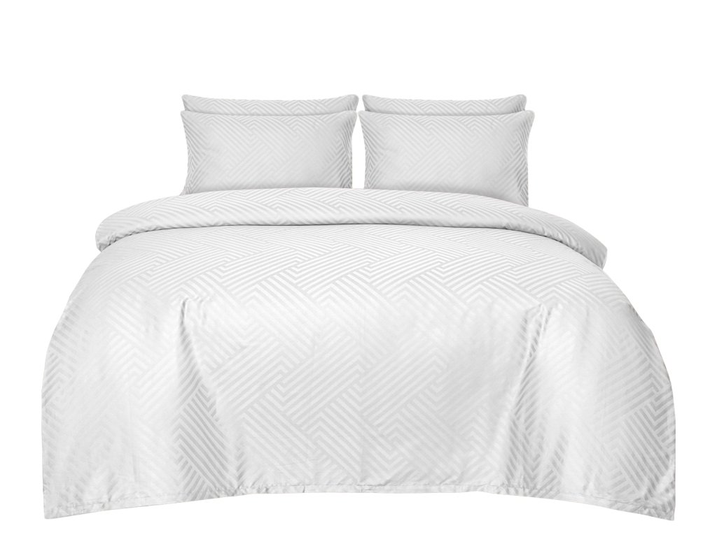 Damaškové povlečení 140x200 + 70x90 cm - Geometrie bílá