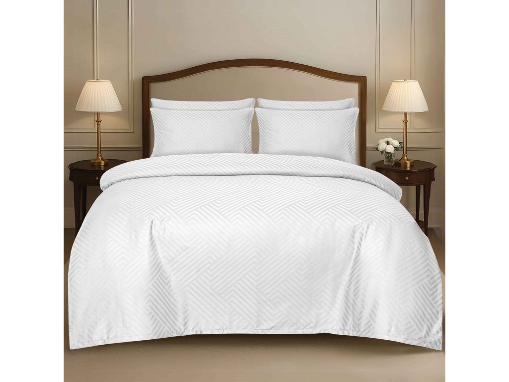 Luxusní damaškové povlečení Geometria s moderním geometrickým žakardovým vzorem. Kombinuje nadčasový design, vysokou kvalitu zpracování a výjimečný komfort při každodenním používání.