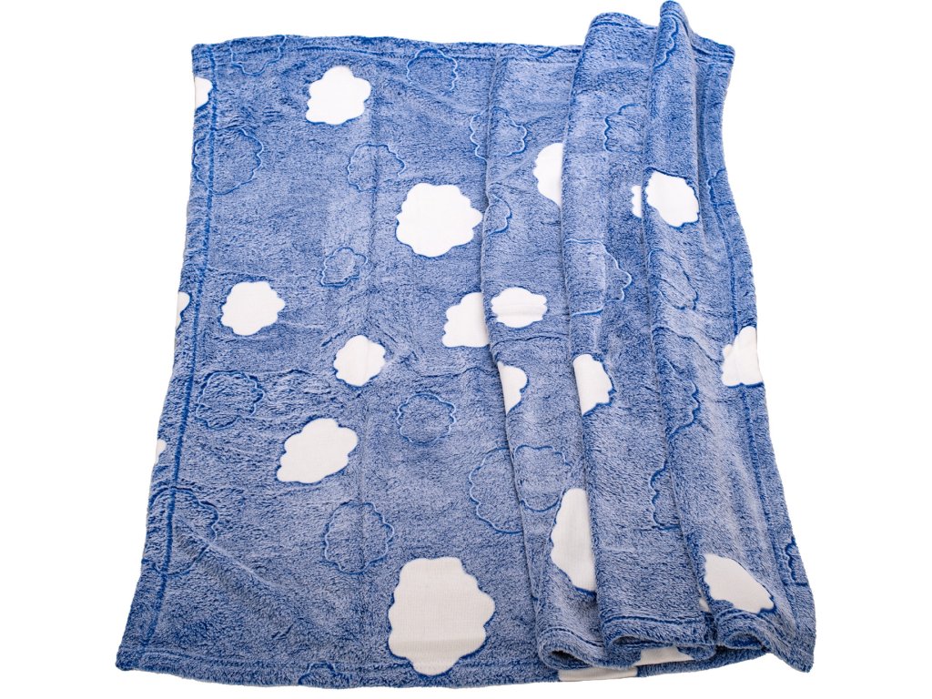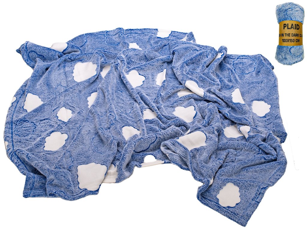 Deka mikroflanel 100x150 modrá s obláčky, svítící ve tmě