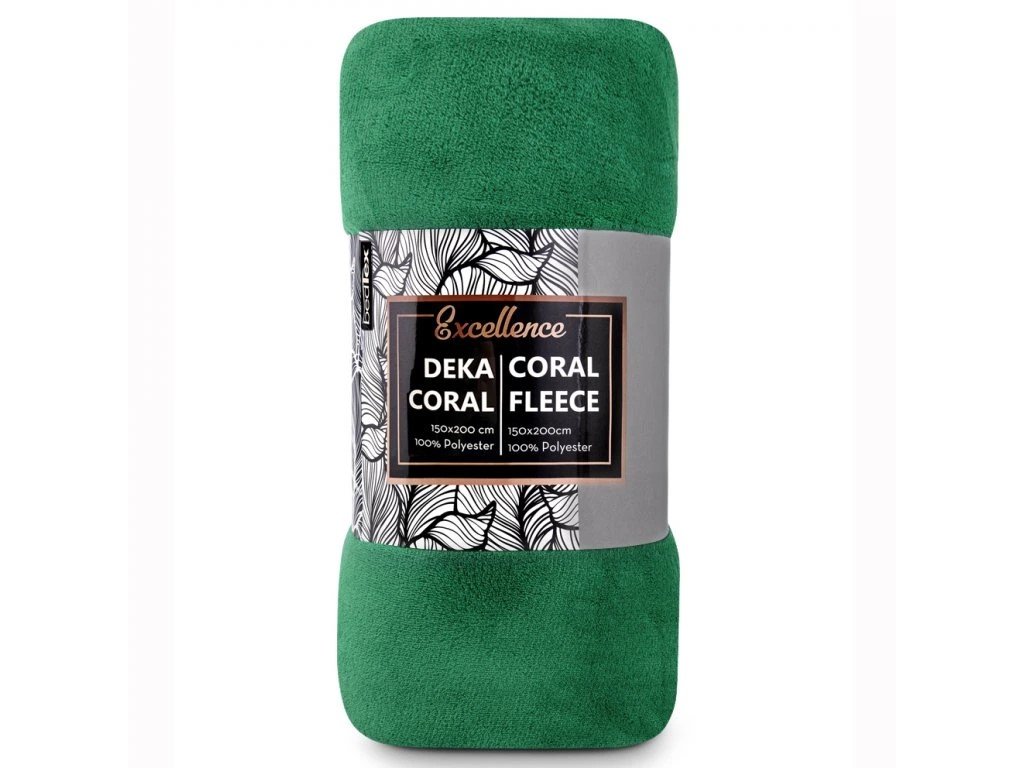 Velmi příjemná heboučká deka z mikroplyše v zelené barvě. Deka je vyrobená ze 100% polyesteru v rozměru 150x200 cm. Gramáž této deky je 300 g/m2. Její povrch je velmi jemný a příjemný na omak. Ani po několika vypráních nemění barvu a nežmolkuje, je odolná vůči pomačkání, a stále si udržuje svůj tvar a vzhled. Deku lemuje dvakrát prošitý lem. Mikroplyšový materiál má jemný a sametový vzhled s krátkými vlákny, které vypadají jako korálové útesy, odtud pochází jeho název. Pokud jde o teplo, plyšové deky zadržují teplo a tvoří izolační vrstvu, což znamená, že udržují teplo blízko vašeho těla.