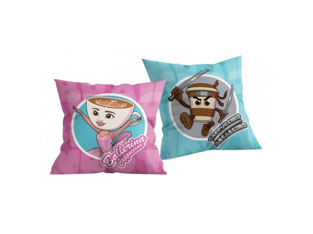 Dekorační polštářek s motivem Italian Brainrot - oblíbenými postavičkami Ballerina Cappuccina a Cuppuccino Assassino. Polštářek je krásným a praktickým doplňkem každého dětského pokojíčku. Vneste tímto polštářkem příjemnou atmosféru do pokojíčků vašich dětí.