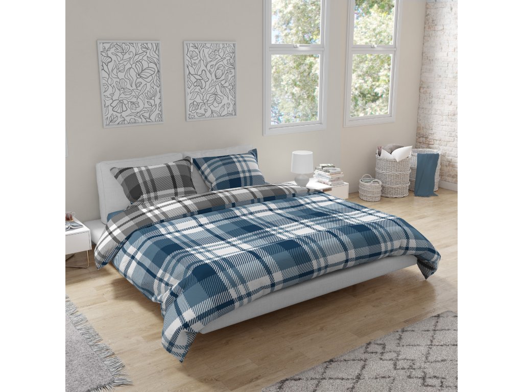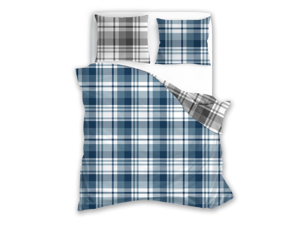 Flanelové povlečení 140x200 + 70x90 cm - Modrá kostka