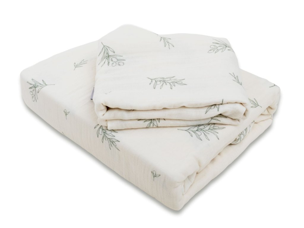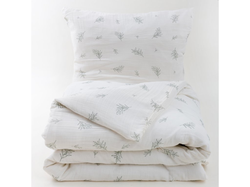 Povlečení je vyrobeno ze 100% bavlněného mušelínu, což je přírodní tkanina známá svou jemností a šetrností k pokožce.