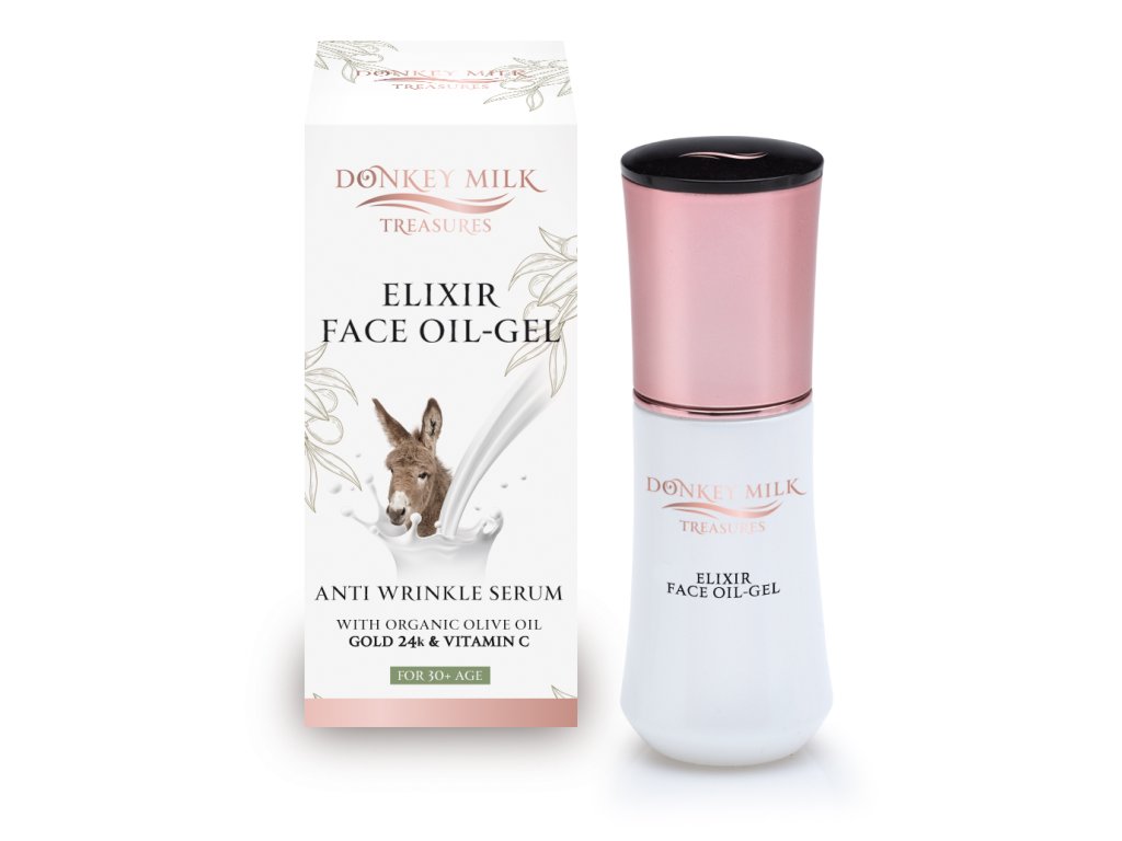 Elixírový pleťový olejový gel je obohacen o 100% řecké oslím mléko získané kryogenní úpravou, organický olivový olej, vitamíny a antioxidanty. Sérum proti vráskám, které redukuje jemné linky, hydratuje, vyživuje a podporuje pružnost pokožky, navrací jí mladistvý vzhled a zářivost – tak, jak to umí jen přírodní péče inspirovaná řeckou tradicí .