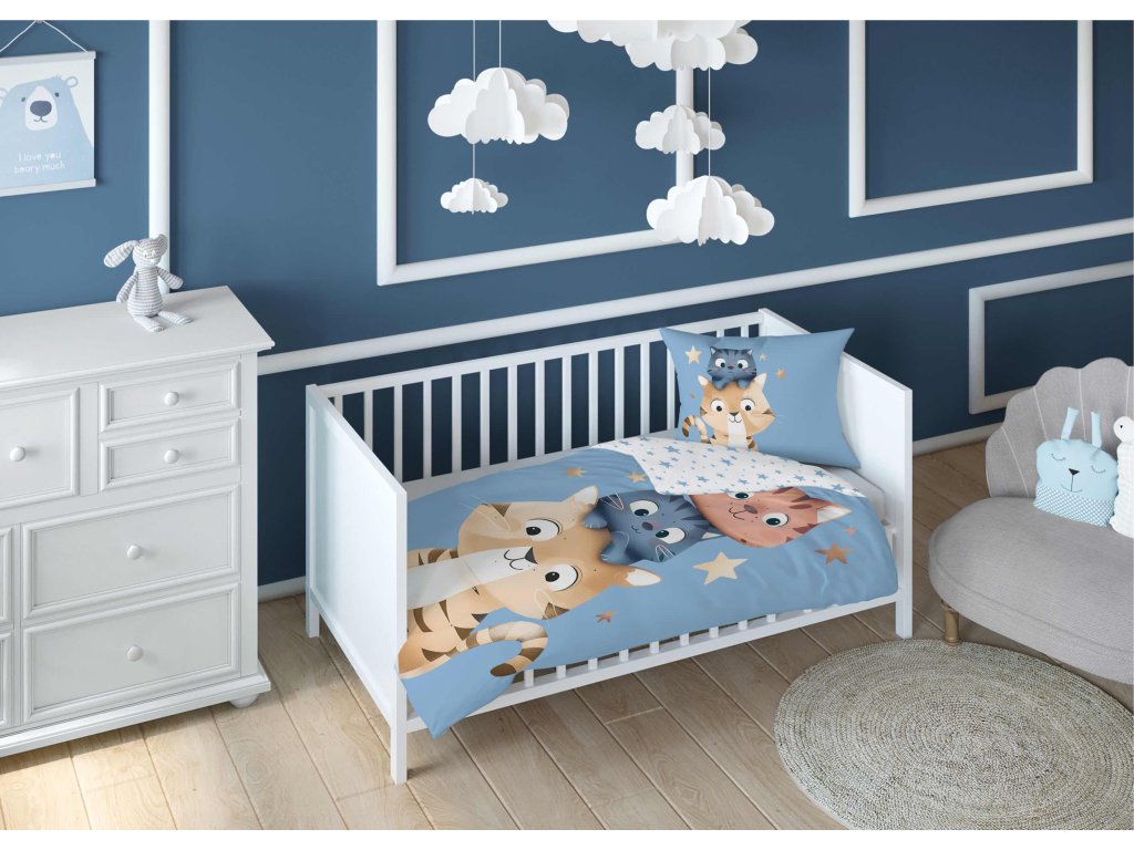 Povlečení do postýlky 100x135 + 40x60 cm - Kočičí hvězdy modré