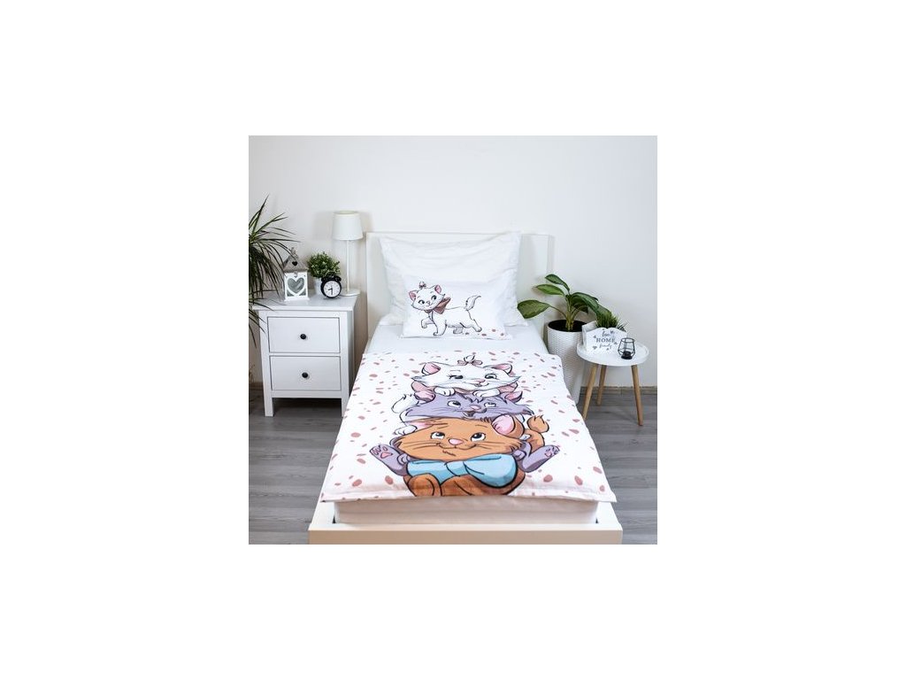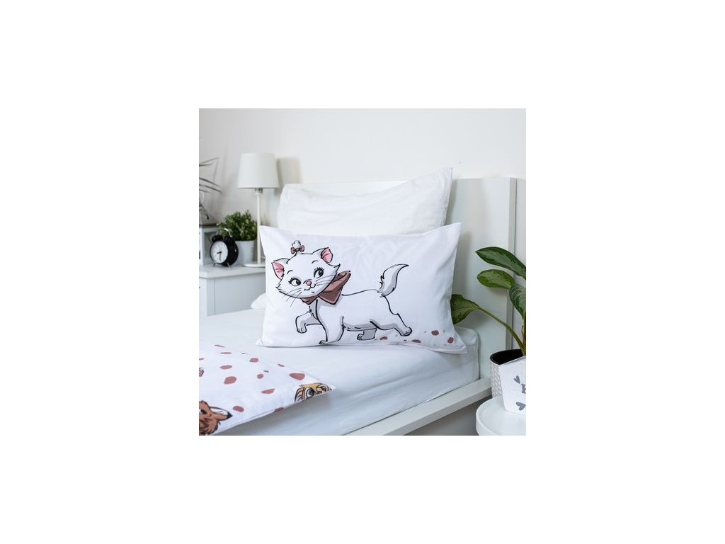Povlečení má oboustranný potisk – každá strana má jiný motiv, díky tomu můžete snadno měnit vzhled postele podle nálady. Na přední straně povlečení je kočička Marie a její přátelé. Zadní strana je bílá s motivem kočiček.