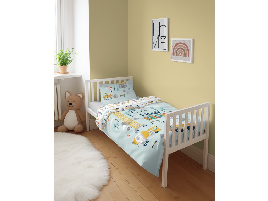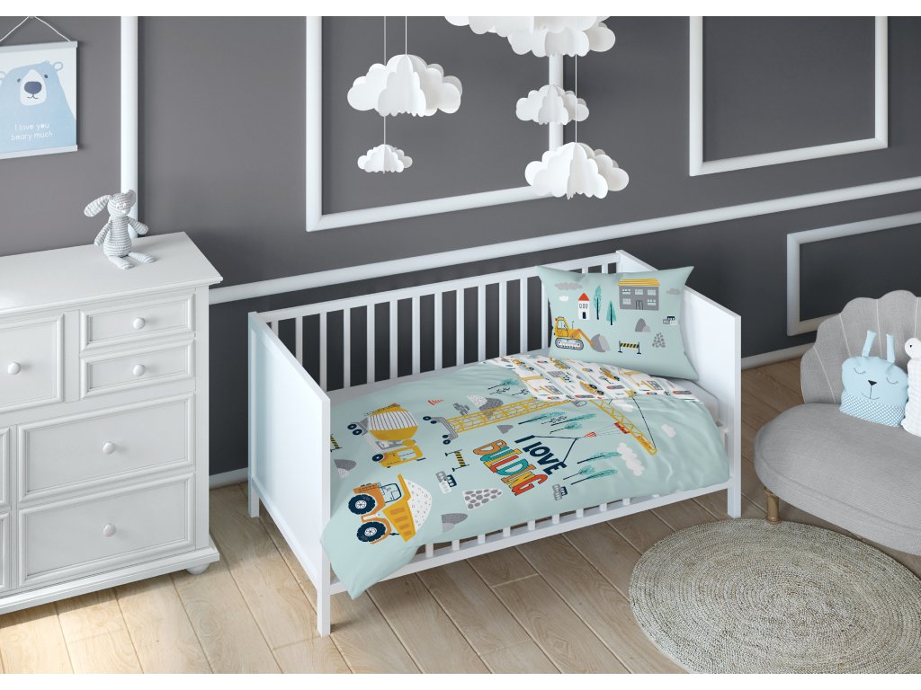Povlečení do postýlky pro nejmenší stavitele. Toto povlečení s motivem stavby s nákladním autem a míchačkou se stane nejen stylovým doplňkem dětského pokoje, ale i zárukou pohodlného a klidného spánku.
