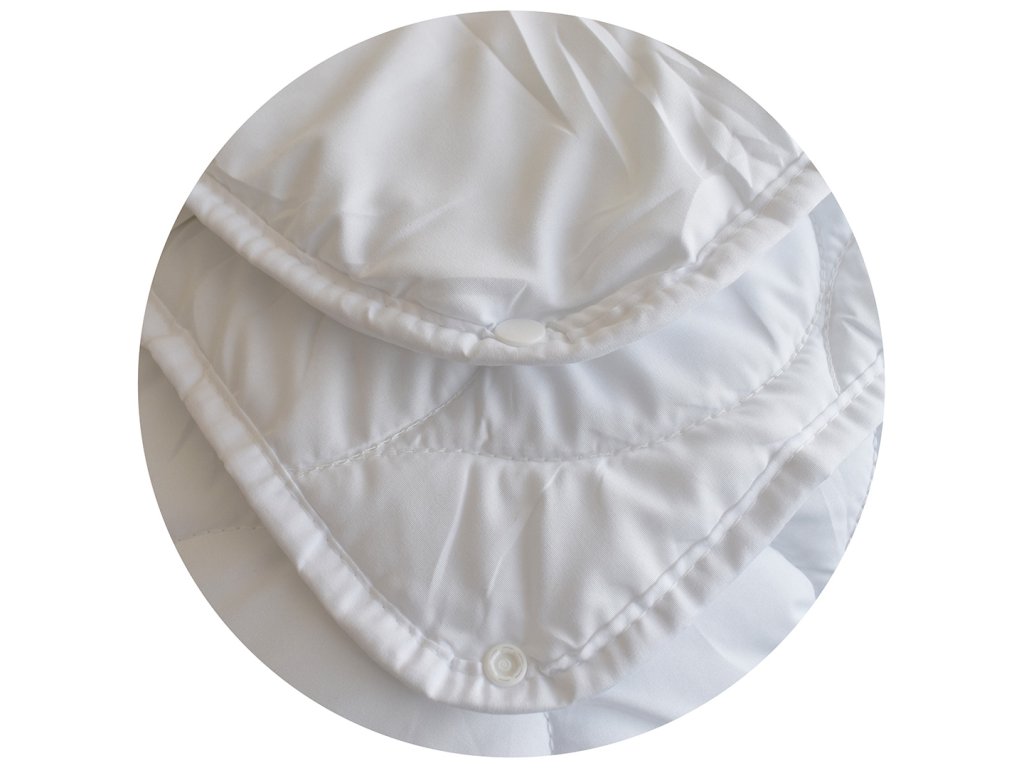 Obě části se snadno spojují pomocí šesti plastových druků, které pevně drží, takže se přikrývky při používání nerozjíždějí. Přikrývka je vhodná i pro alergiky a citlivou pokožku.