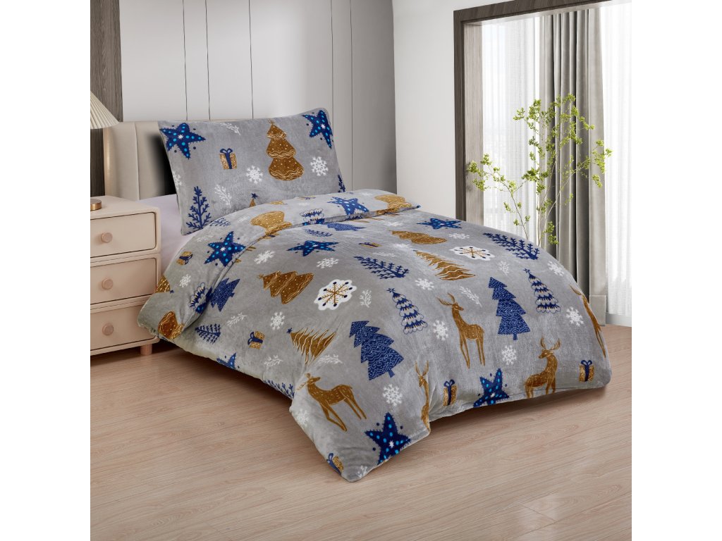 Vánoční mikroplyšové povlečení na šedém podkladu je oboustranné. Souprava obsahuje povlak na peřinu a polštář ve stejném motivu.