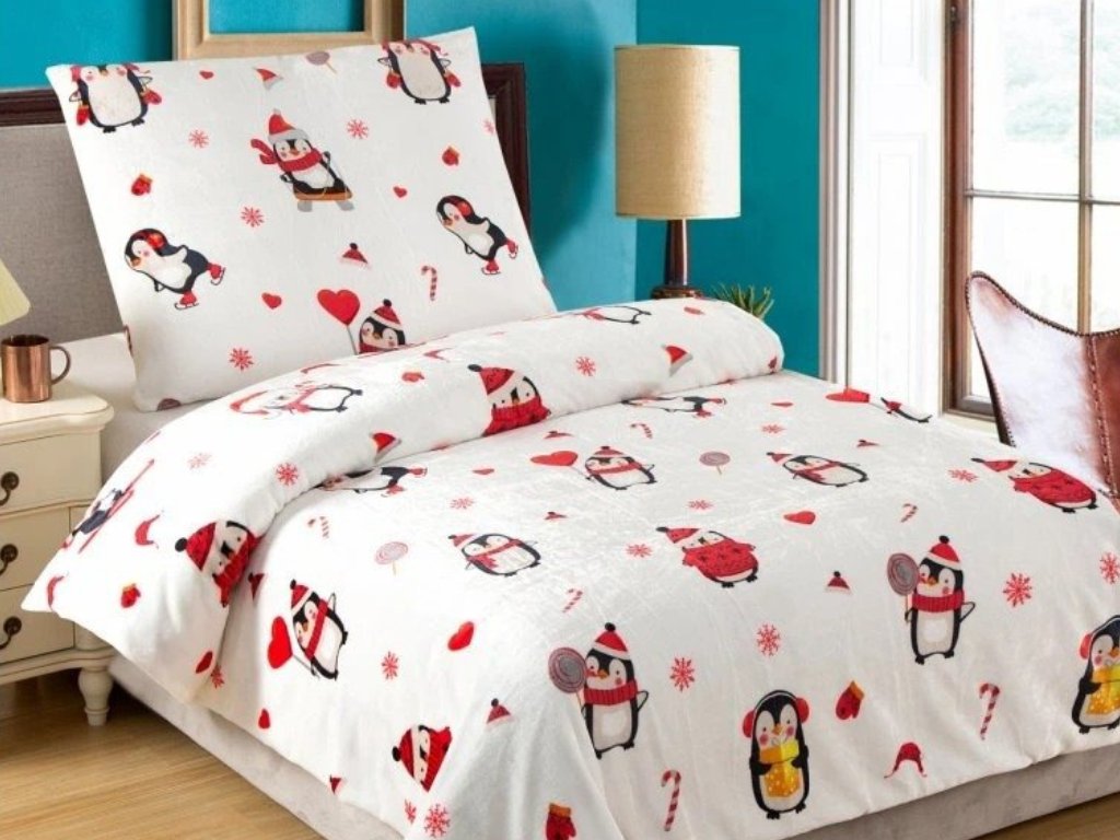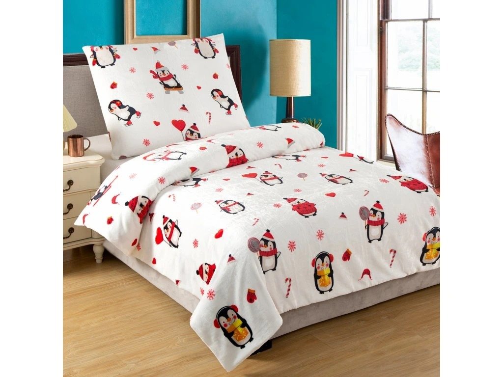 Vánoční mikroplyšové povlečení 140x200 + 70x90 cm - Penguin