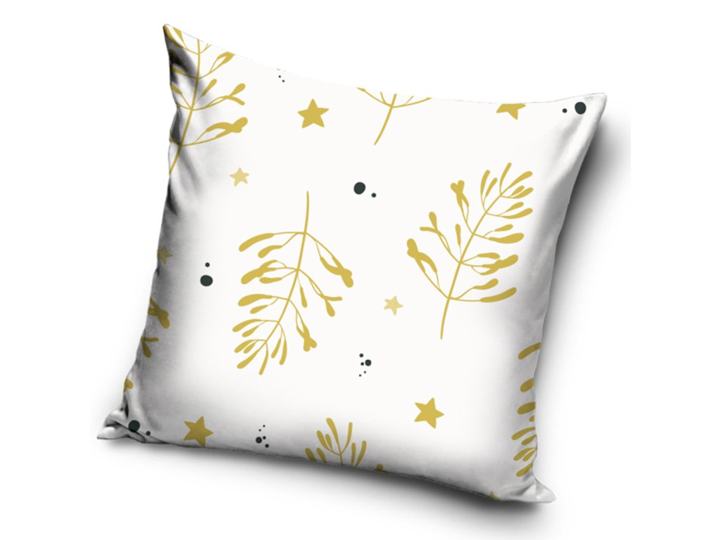 Vánoční povlak na polštářek skvěle doplní každý interiér a navodí u vás doma vánoční atmosféru. Povlak zdobí vánoční motiv zlatého jmelí, které je rozprostřené na bílém podkladu. Povlak je vyroben ze 100% polyesteru - soft velboa - mikroplyš, který je velmi měkký, heboučký a připomíná samet. Rozměry povlaku jsou 40x40 cm a má praktické zapínání na zip.
