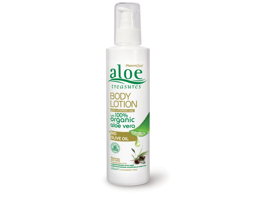 Řada Aloe Treasures - hlavní složkou produktů této řady je 100% řecké organické aloe vera a olivový olej.